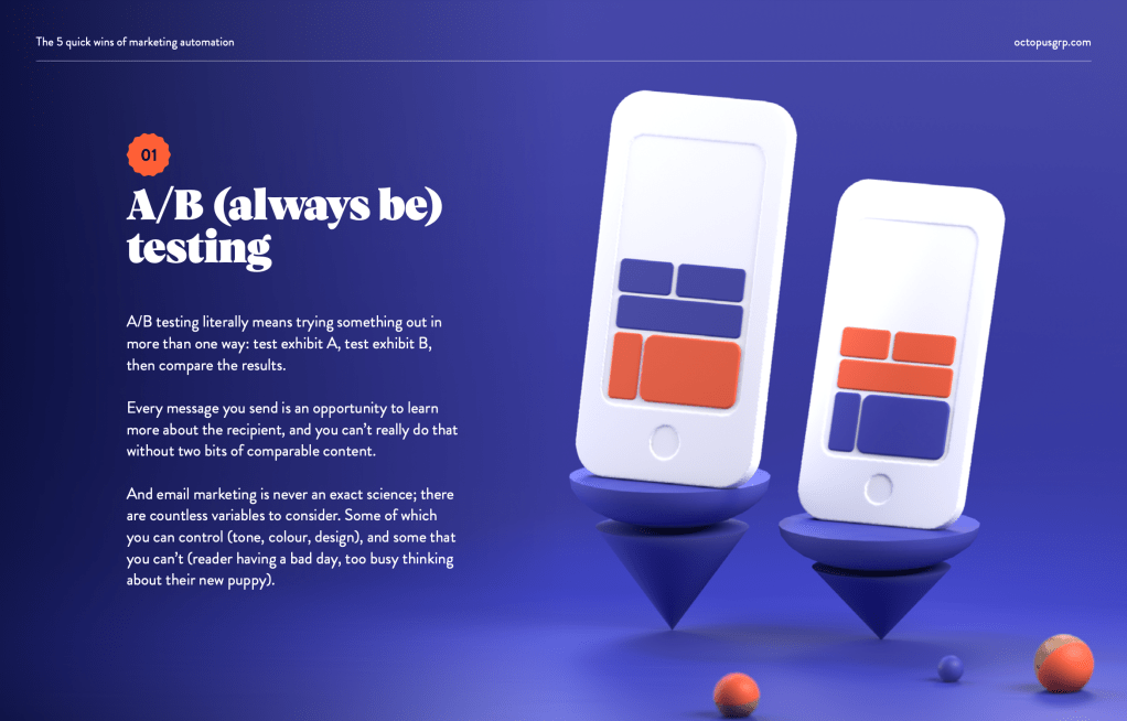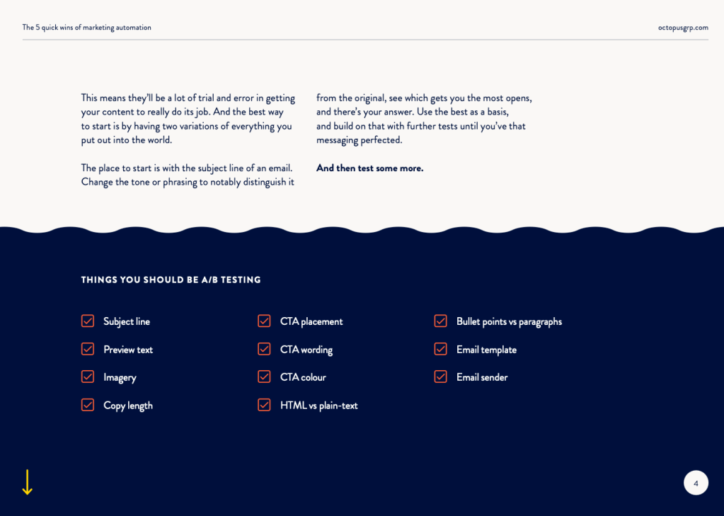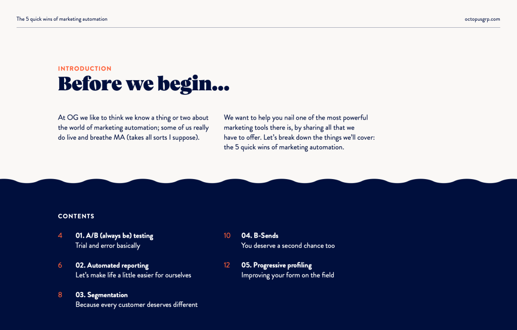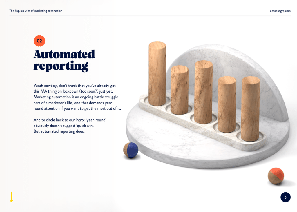 Perhaps the ‘meatiest’ project during my time, and the one I’m most proud of, is this Brand to Sales Academy guide: ‘5 Quick Wins to Marketing Automation’ guide. This was the hero content as part of a wider campaign, with a supporting comms plan to illustrate the content inside.